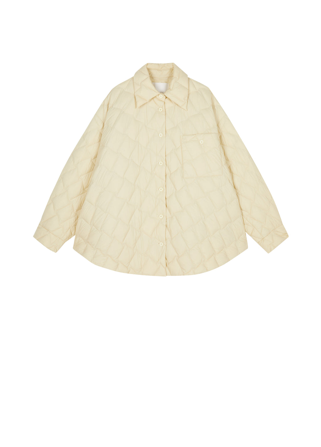 Diese Oversize-Daunenjacke verbindet Funktion und High-Fashion-Ästhetik. Mit ihrer skulpturalen Silhouette und grafisch anmutenden Steppstruktur verkörpert sie modernen Minimalismus auf höchstem Niveau.