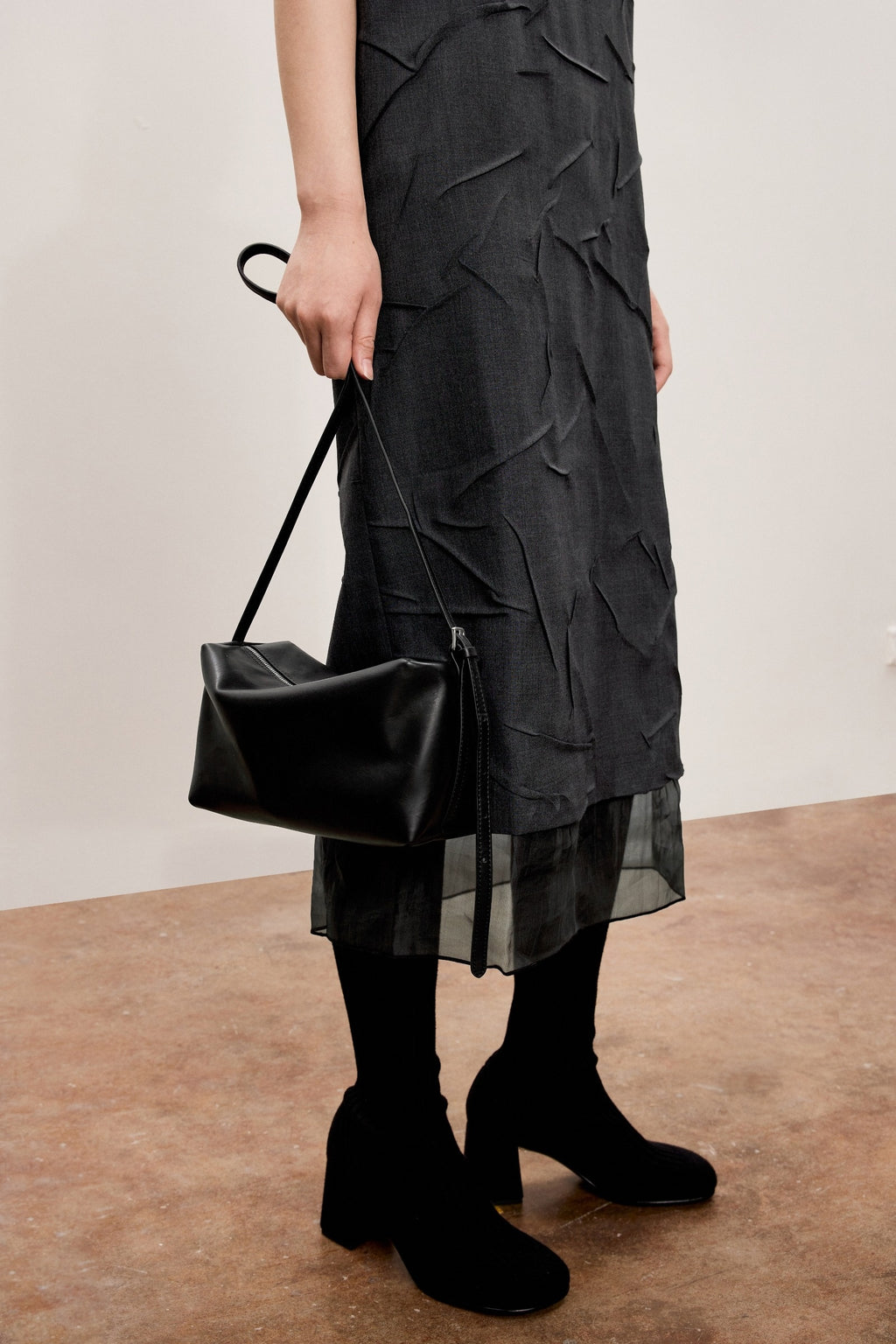 Verschluss: Ein feiner, nahtverdeckter Reißverschluss am Rücken ermöglicht ein einfaches An- und Ausziehen und bewahrt die cleane Linienführung.