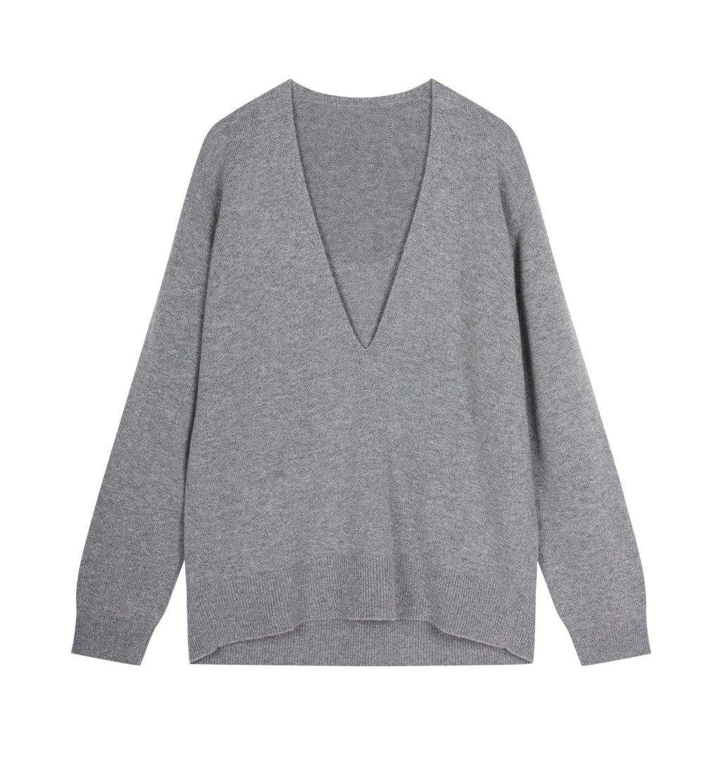 Damen Loose Strickpullover mit tiefem V-Ausschnitt Grau