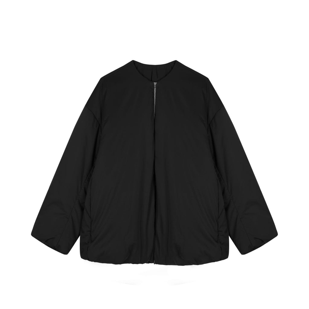 Minimalistisches Design: Der kragenlose Rundhalsausschnitt und das seidig-matte Obermaterial machen diese Daunenjacke zu einem zeitlosen und vielseitigen Essential.