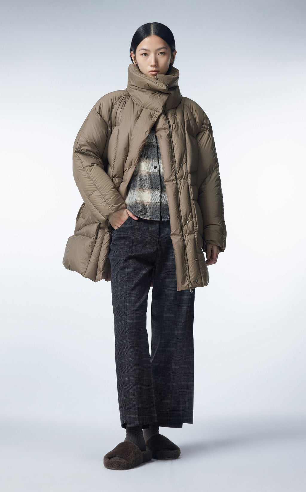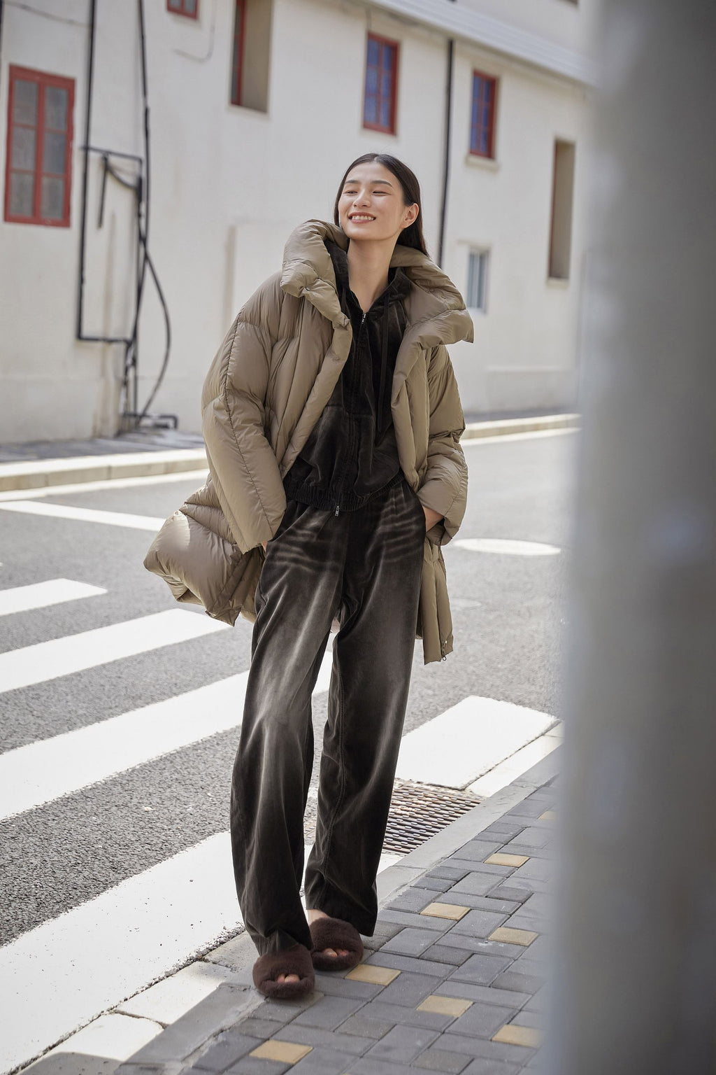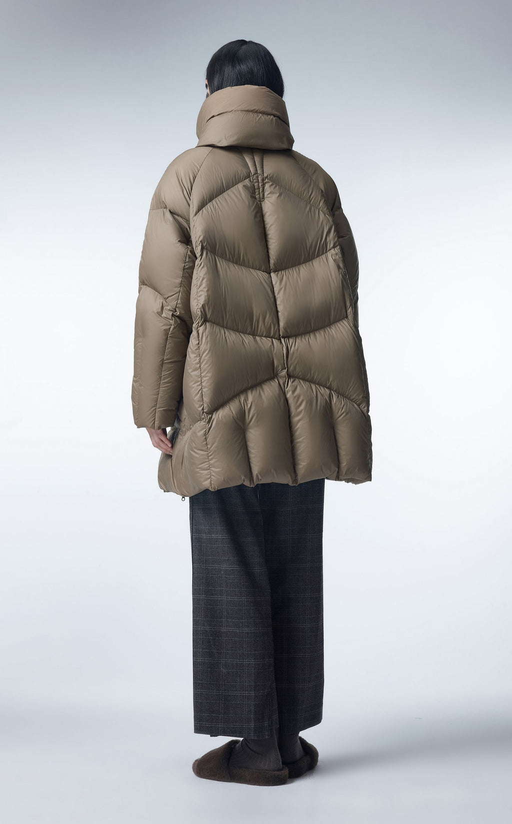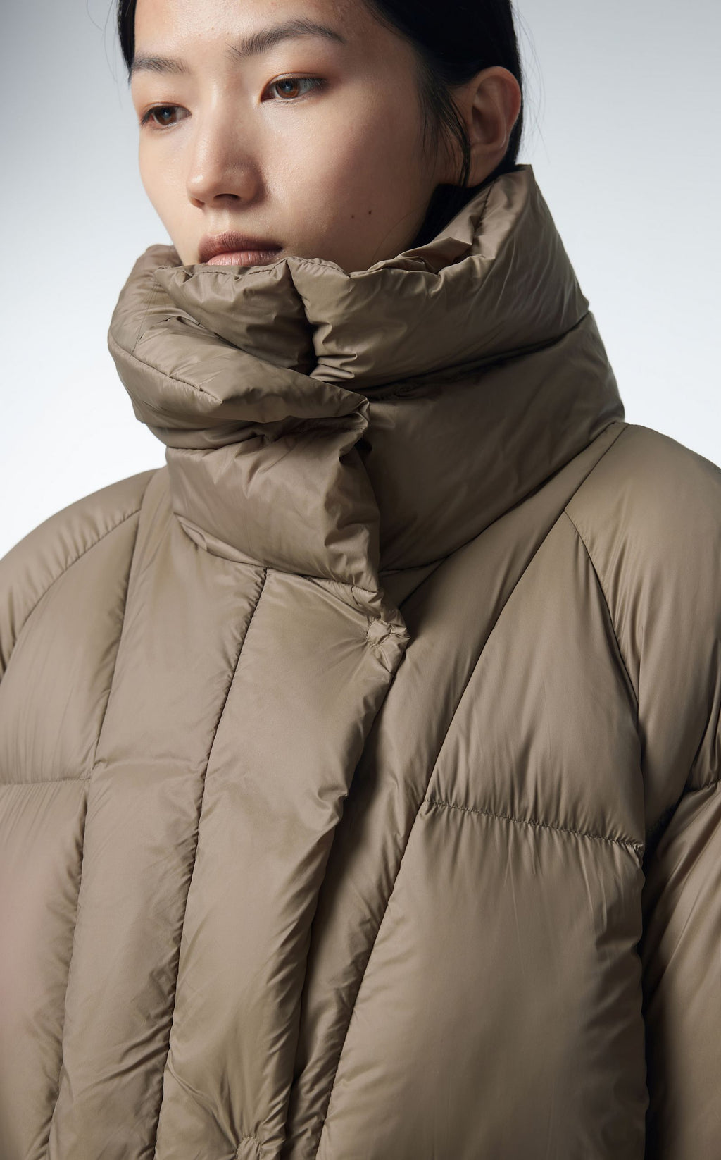Ein warmer, schwarzer Daunenmantel mit hohem Stehkragen und einem verdeckten Zwei-Wege-Reißverschluss für optimalen Schutz vor Kälte. Die 5 schwarzen Druckknöpfe sorgen für einen zusätzlichen Verschluss und die beiden Seitentaschen bieten Platz für wichtige Gegenstände. Perfekt für kalte Tage und eine stilvolle Ergänzung für jede Garderobe.