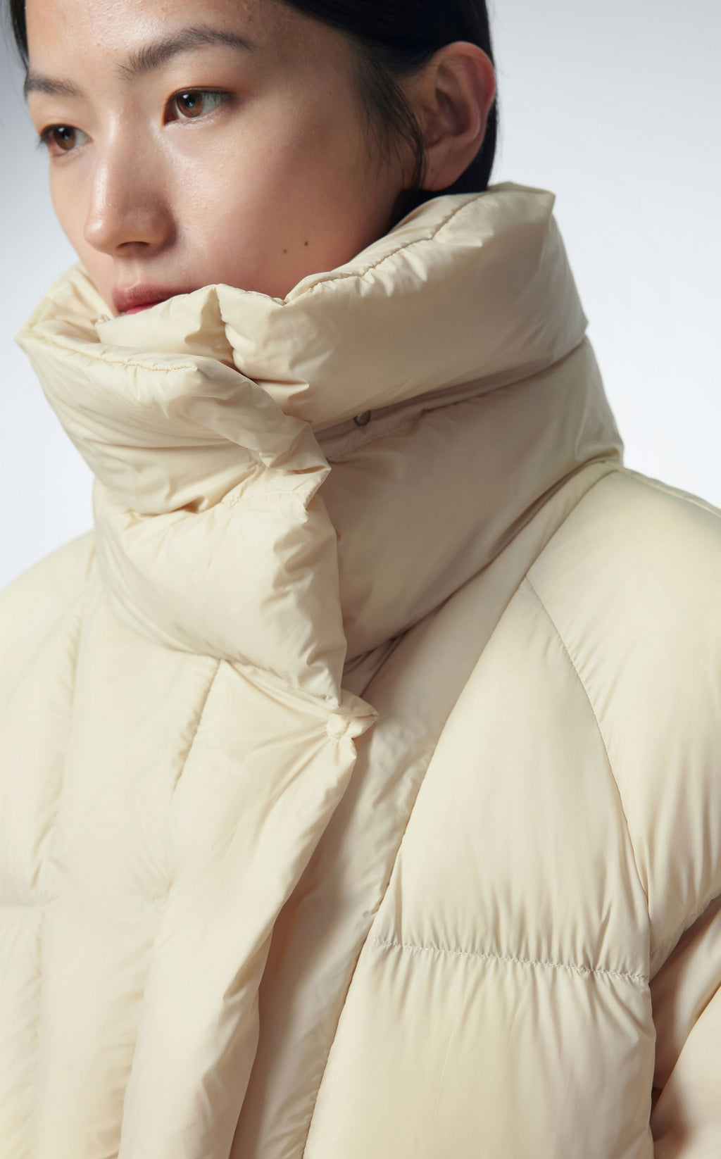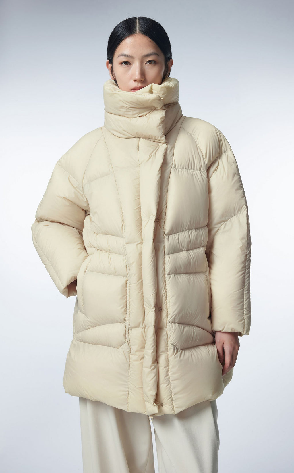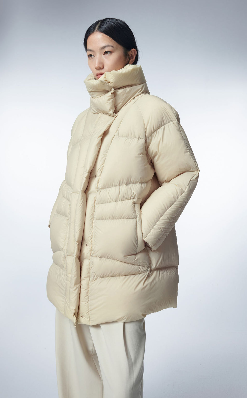 Ein warmer, schwarzer Daunenmantel mit hohem Stehkragen und einem verdeckten Zwei-Wege-Reißverschluss für optimalen Schutz vor Kälte. Die 5 schwarzen Druckknöpfe sorgen für einen zusätzlichen Verschluss und die beiden Seitentaschen bieten Platz für wichtige Gegenstände. Perfekt für kalte Tage und eine stilvolle Ergänzung für jede Garderobe.