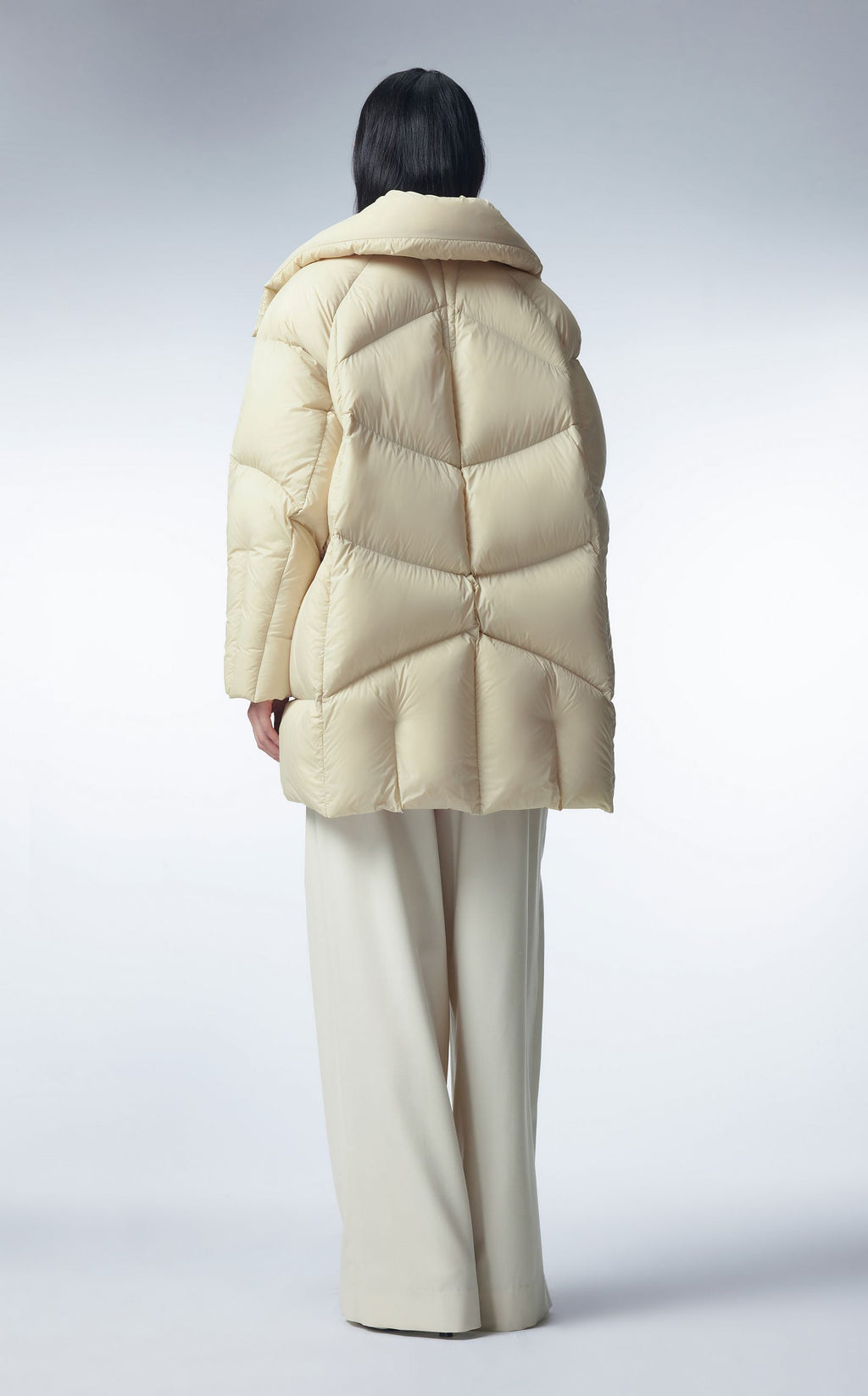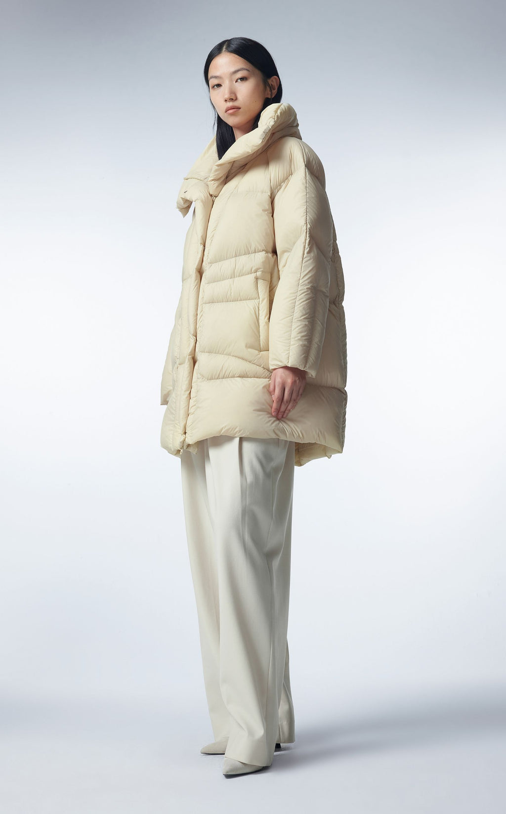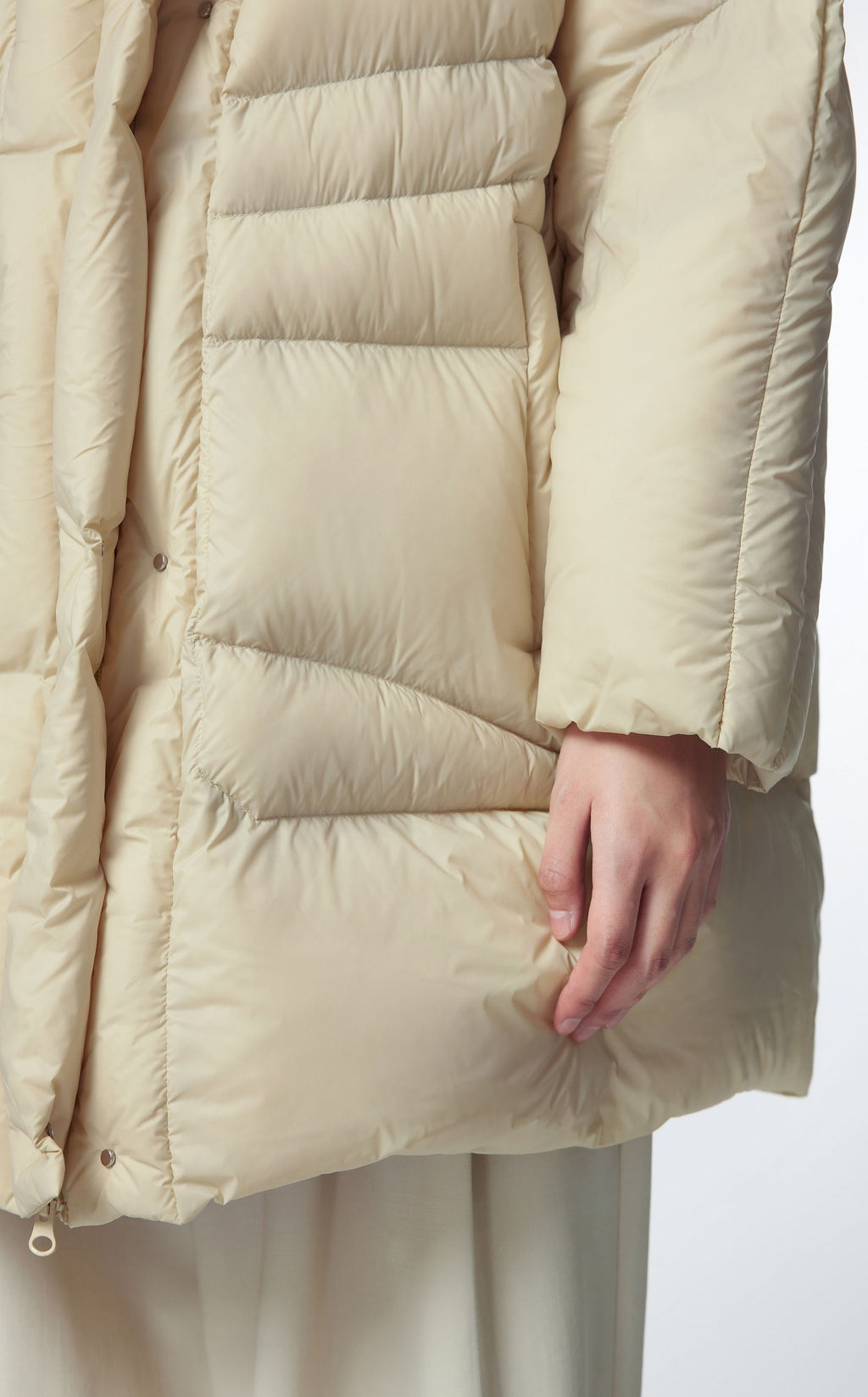 Ein warmer, schwarzer Daunenmantel mit hohem Stehkragen und einem verdeckten Zwei-Wege-Reißverschluss für optimalen Schutz vor Kälte. Die 5 schwarzen Druckknöpfe sorgen für einen zusätzlichen Verschluss und die beiden Seitentaschen bieten Platz für wichtige Gegenstände. Perfekt für kalte Tage und eine stilvolle Ergänzung für jede Garderobe.