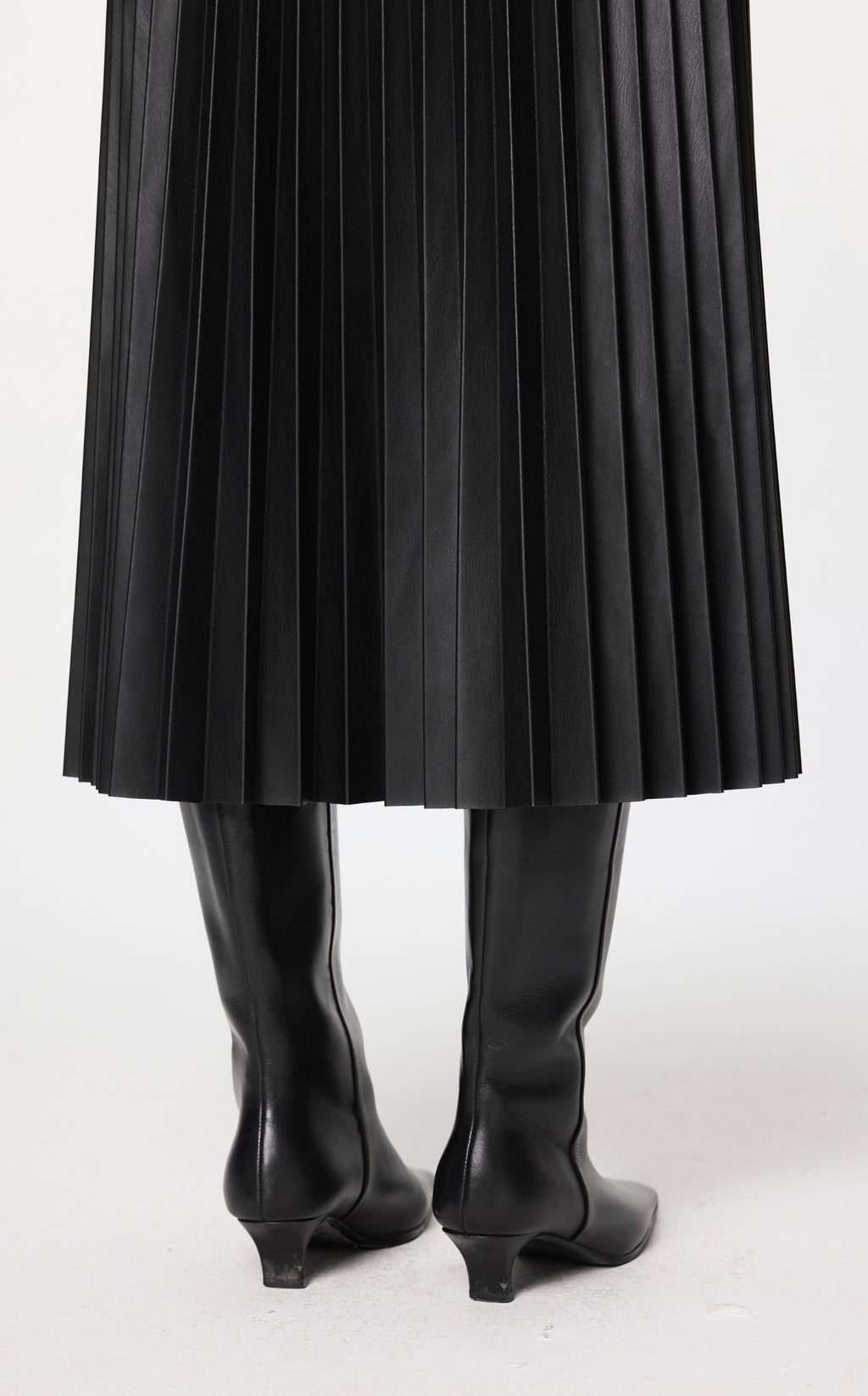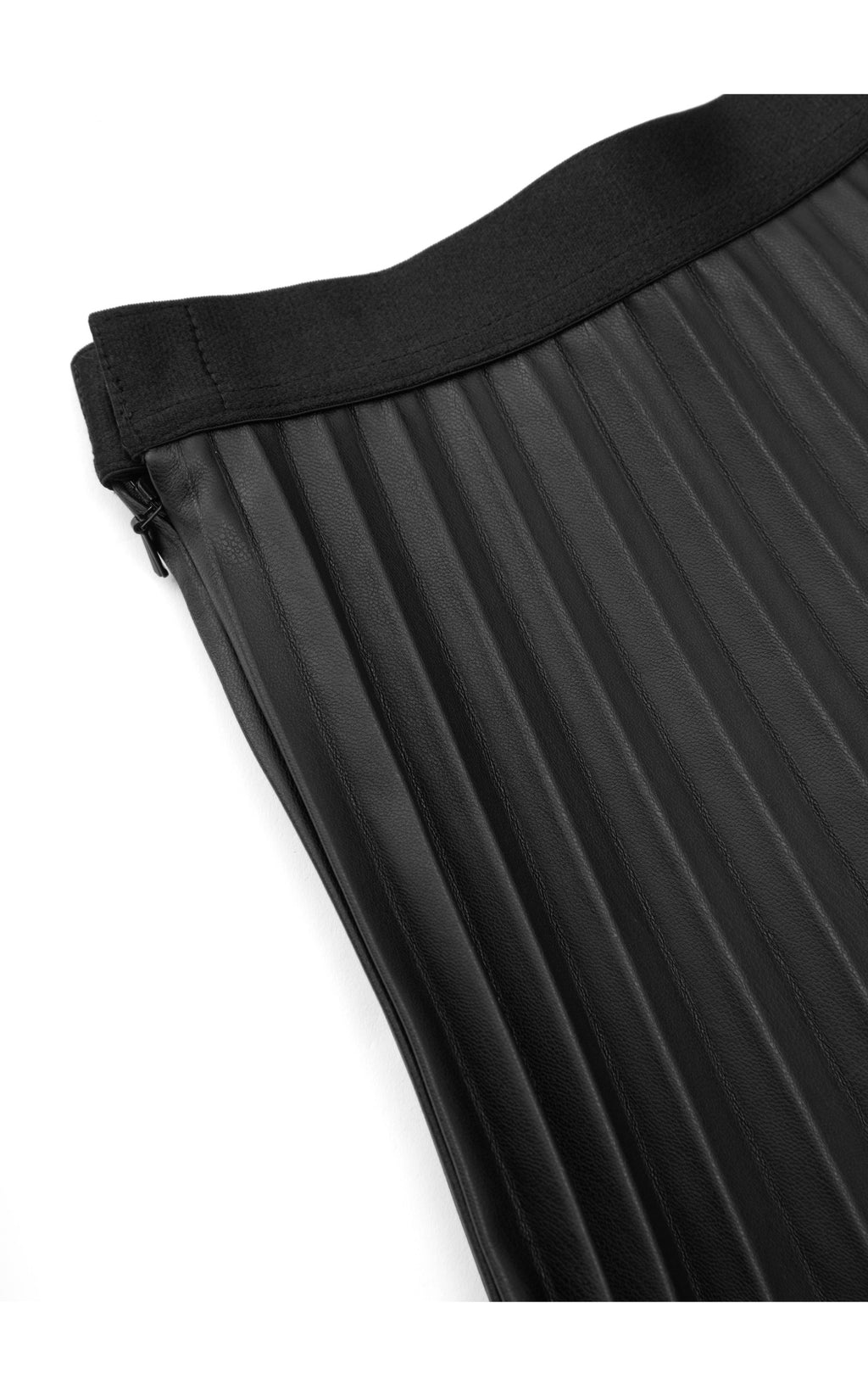 Damen eleganter A-Line Rock mit Plissee-Details und Lederoptik