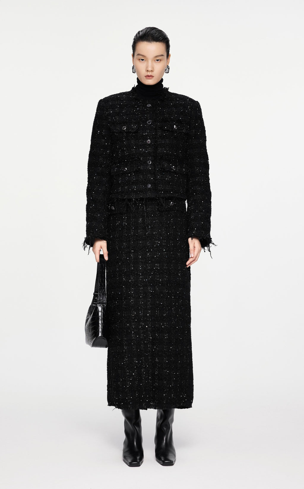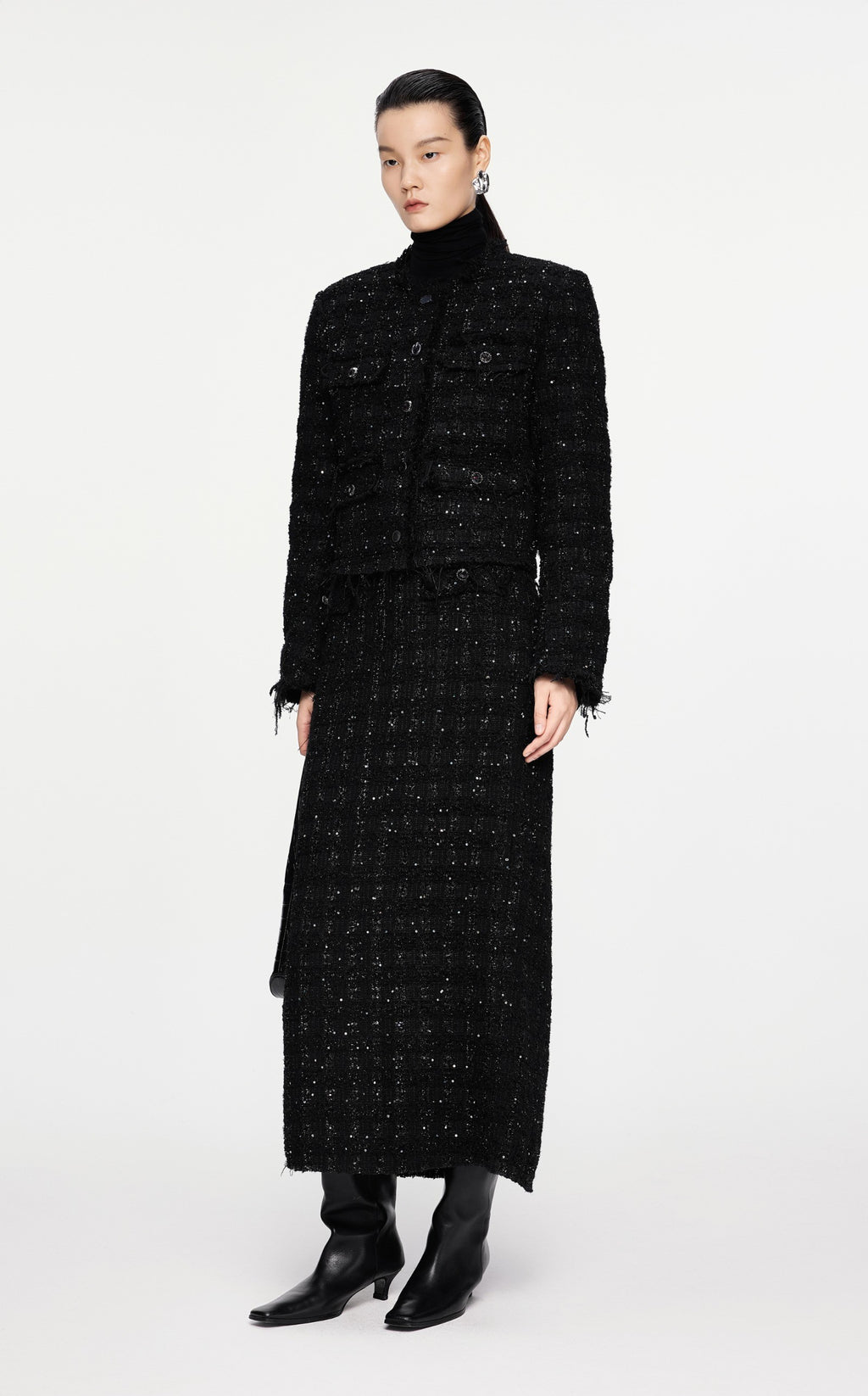 Diese kurze Daunenjacke von JNBY vereint urbane Lässigkeit mit glamouröser Eleganz. Die funkelnde Optik und der moderne Fransensaum machen sie zum idealen Begleiter für stilbewusste Damen, die auch an kälteren Tagen nicht auf einen einzigartigen Look verzichten möchten.