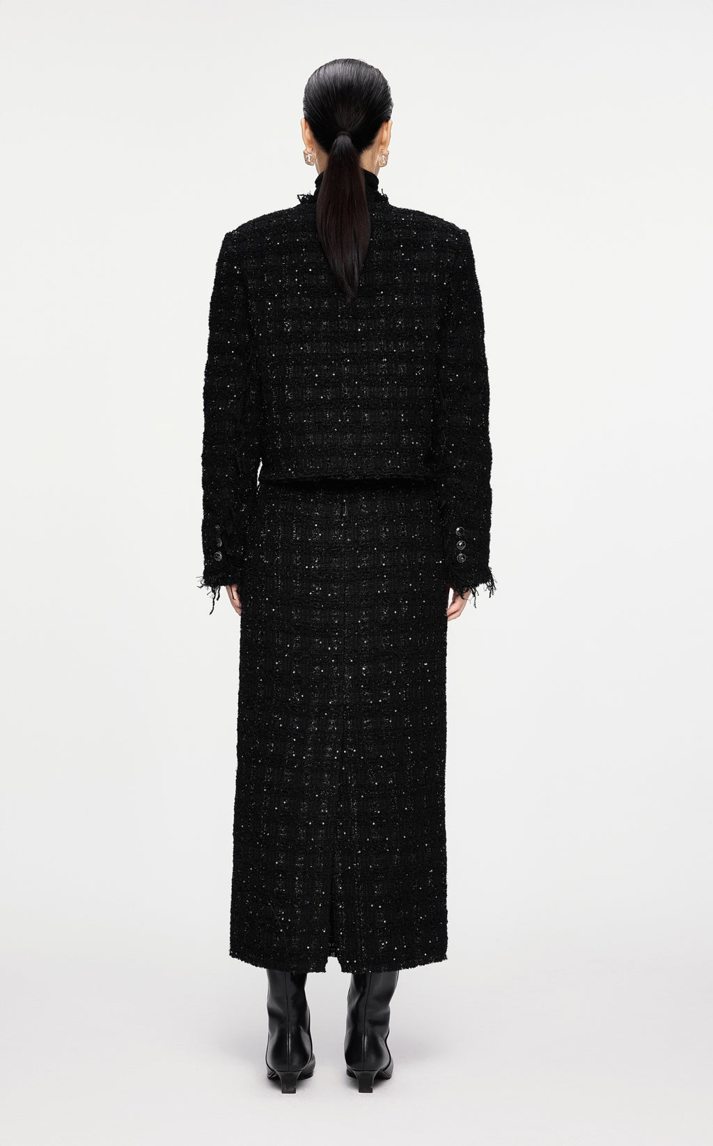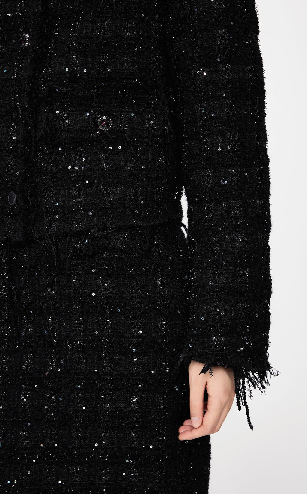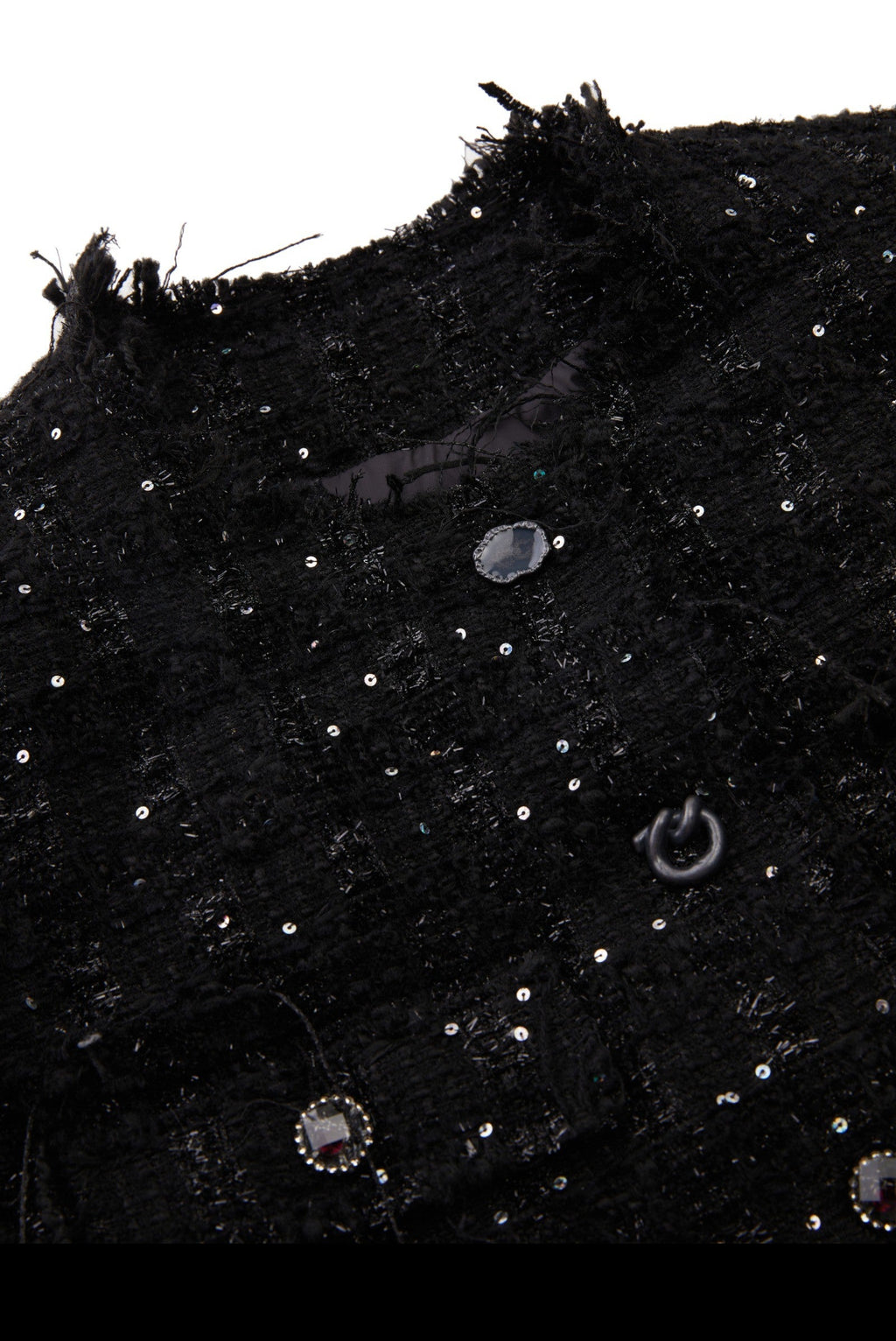 • Farbe: Tiefes Schwarz – zeitlos und elegant, verstärkt durch den subtilen Glanz der Pailletten.