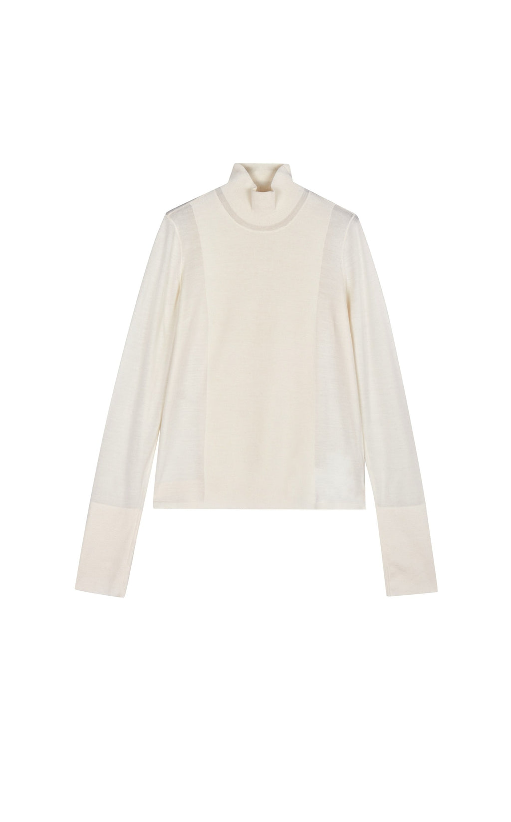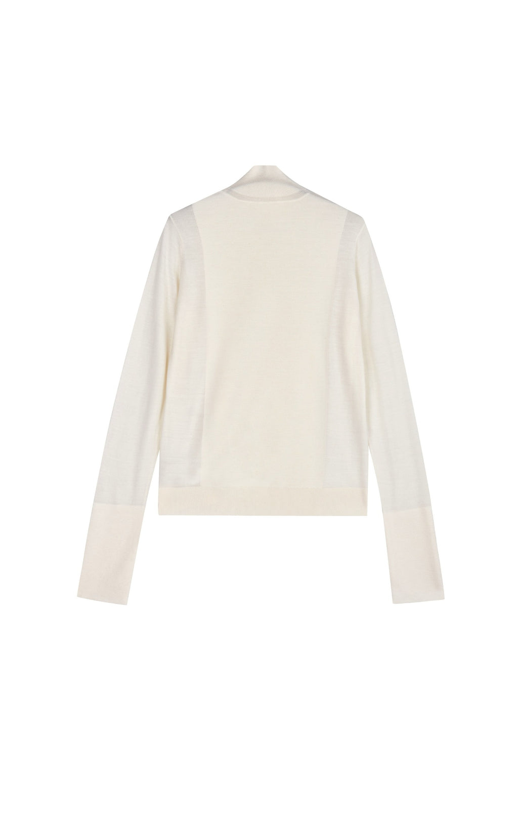Dieser Pullover aus reiner Wolle in Off-White ist ein Meisterwerk des Minimalismus. Seine schmale Passform und das hochwertige Material machen ihn zu einem unverzichtbaren Basic, das Eleganz und Komfort perfekt vereint. Ideal für das Büro, den Alltag oder entspannte Wochenenden.