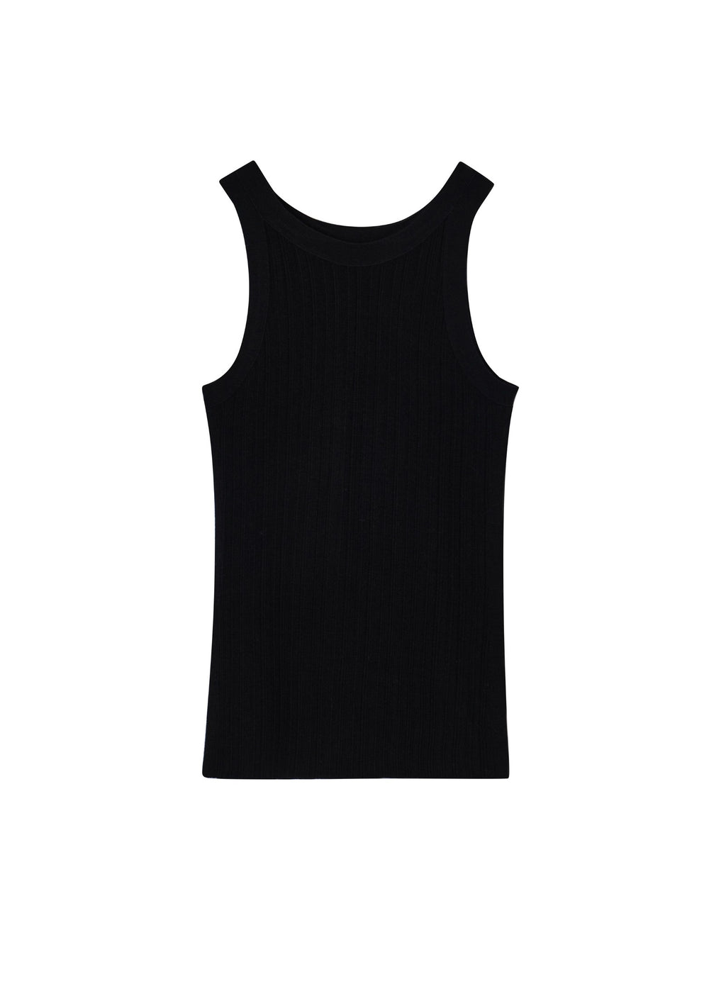 Das schwarze Stricktop in Slim-Passform ist ein vielseitiges Kleidungsstück, das sich sowohl elegant als auch lässig kombinieren lässt. Sie ist die perfekte Ergänzung für jede Garderobe.
