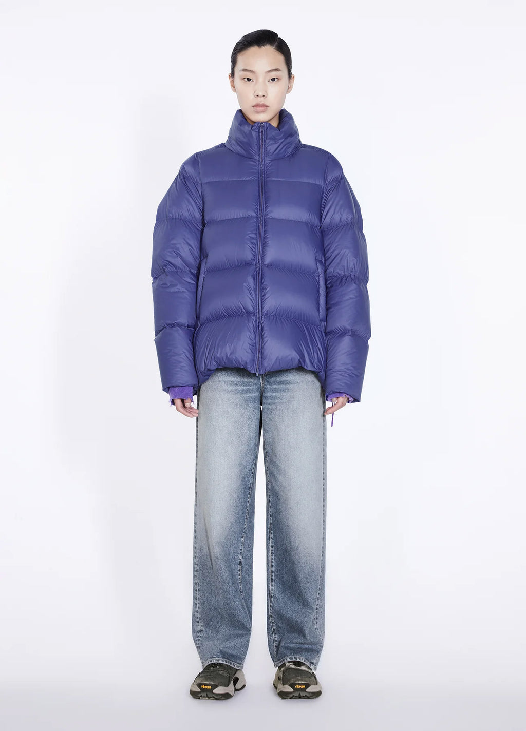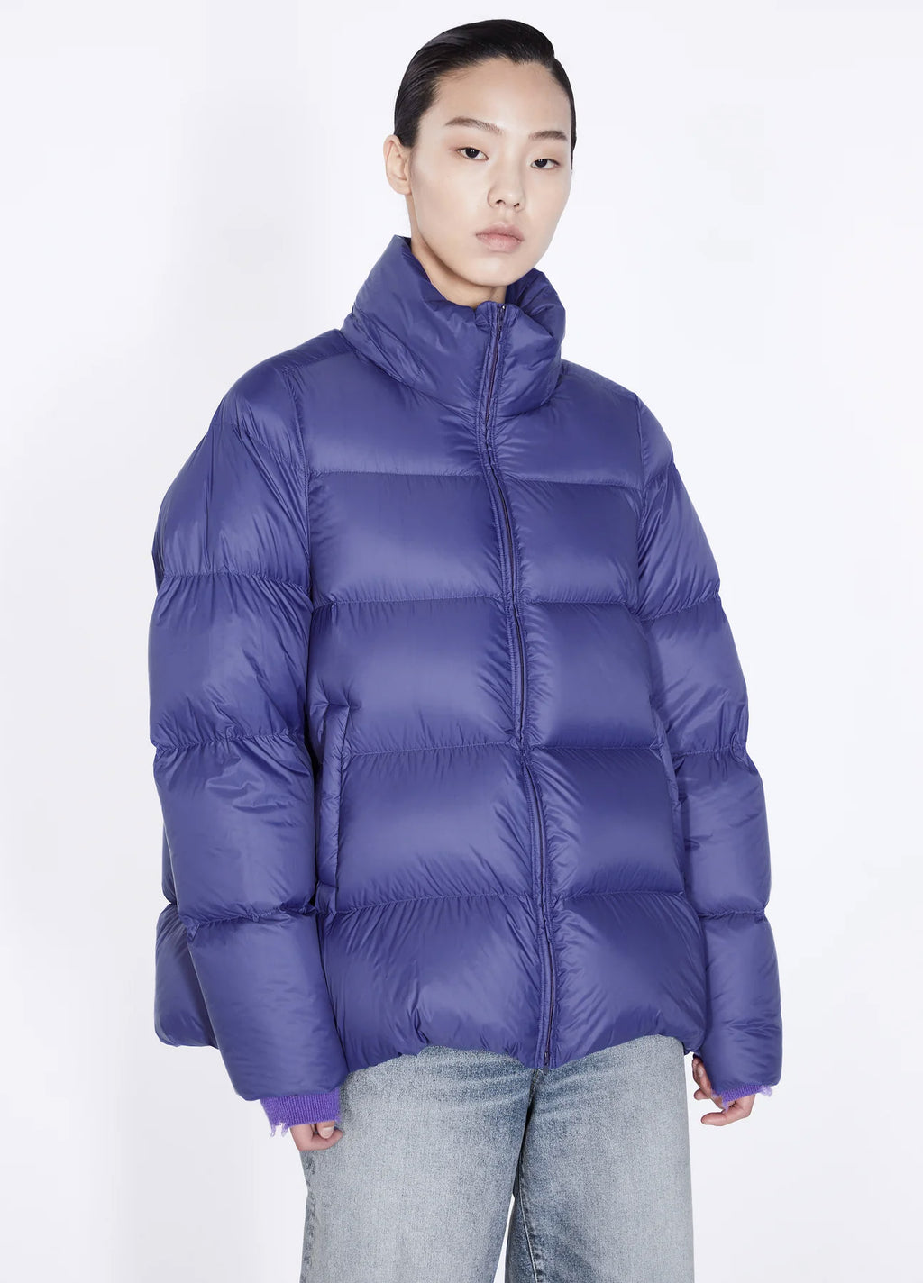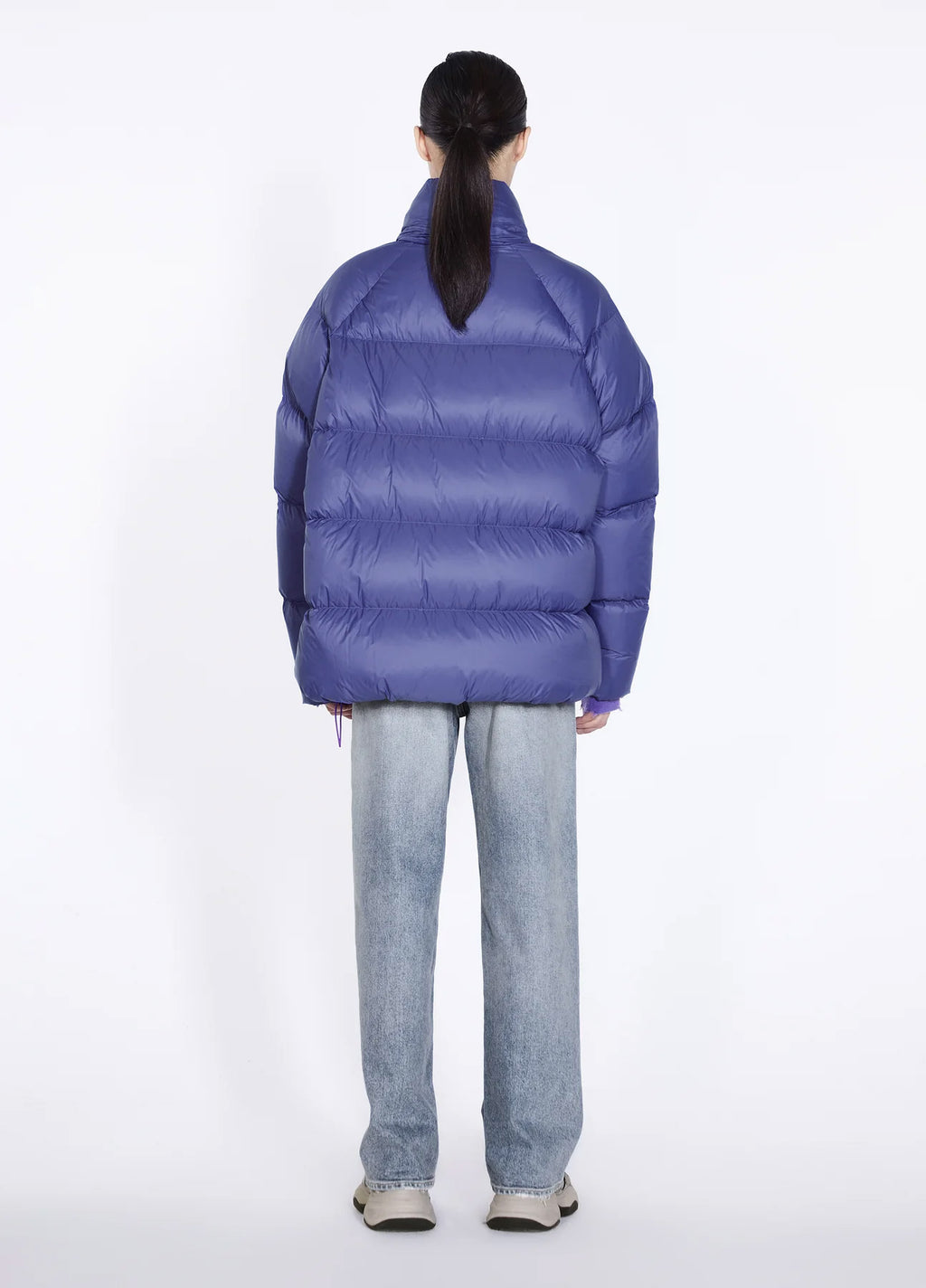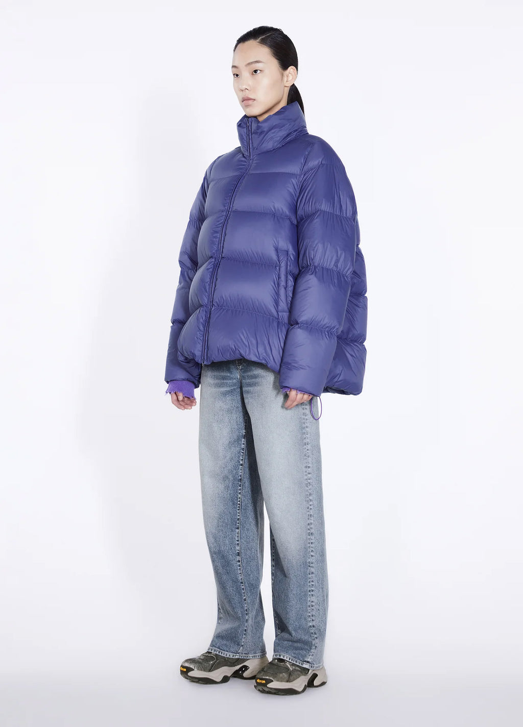 Jacke in A-Linie. Seitliche Schlitze mit Reißverschluss und Tunneldurchzug unterstreichen die Variabilität.