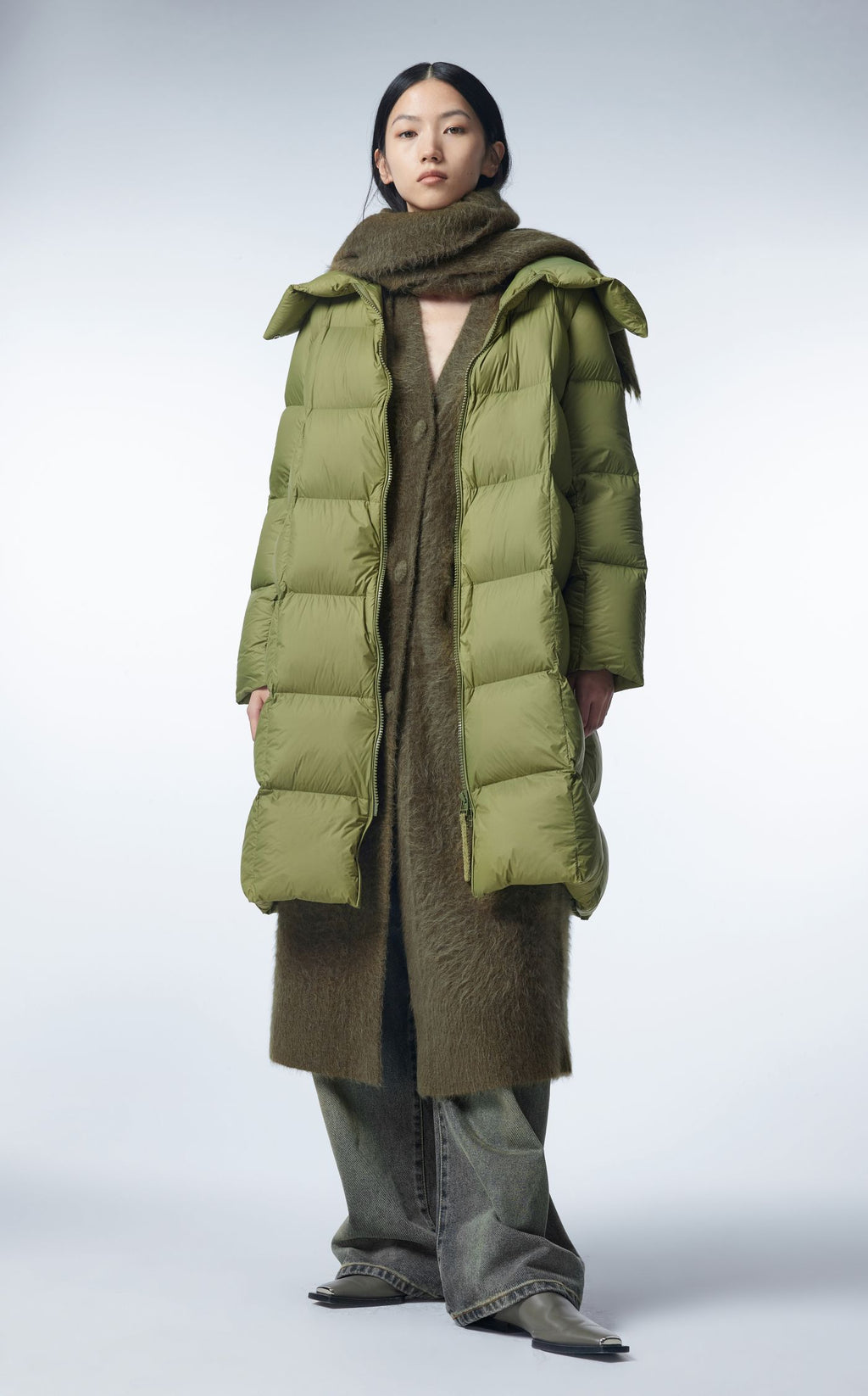 Dieser Daunenmantel von JNBY hat einen Stehkragen, Eingriffstaschen und einen Zwei-Wege-Reißverschluss. Der Kastenstepp sorgt für eine lässige Passform und hält warm.
