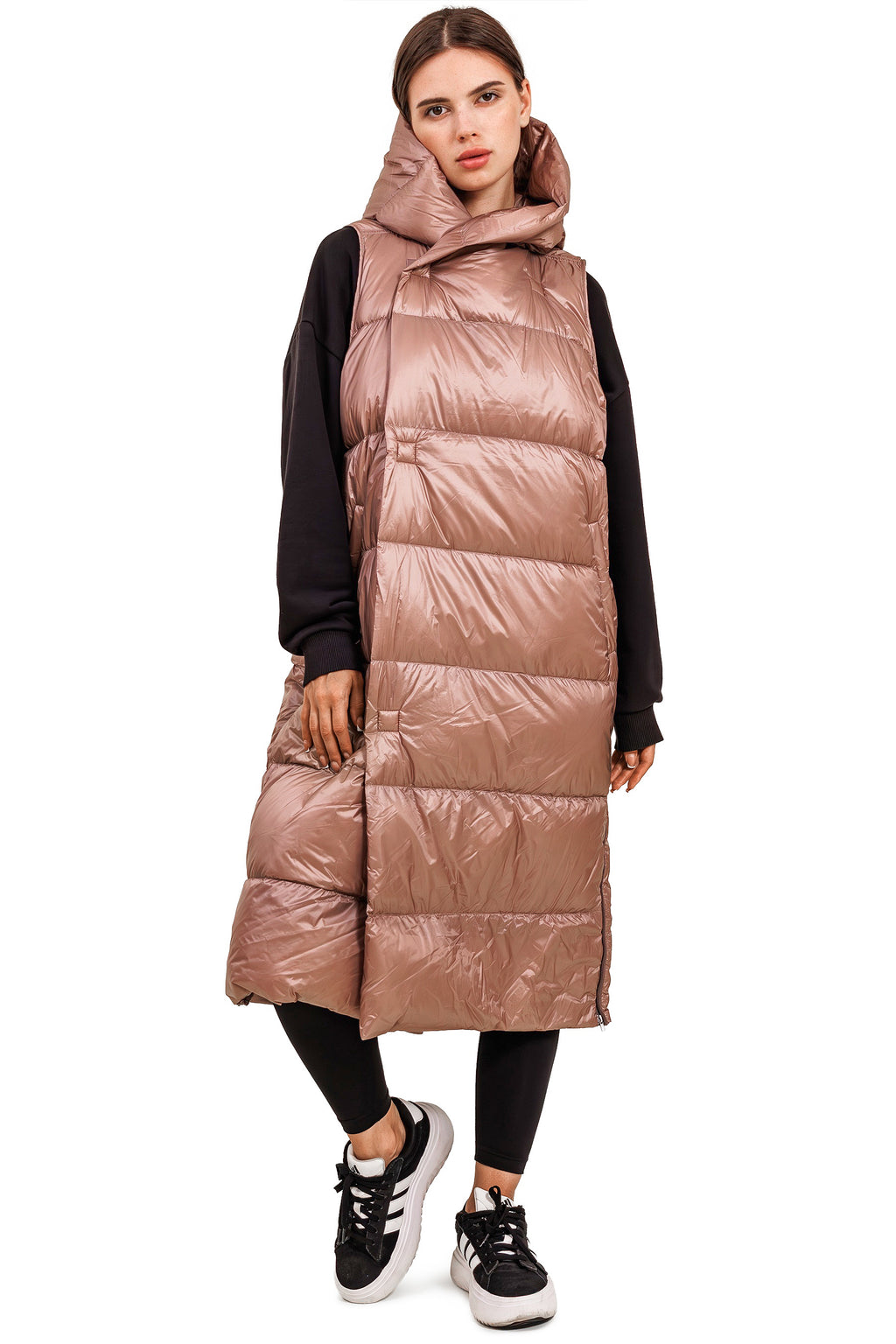 Diese lange Daunenweste ist perfekt für kühle Frühlings-,