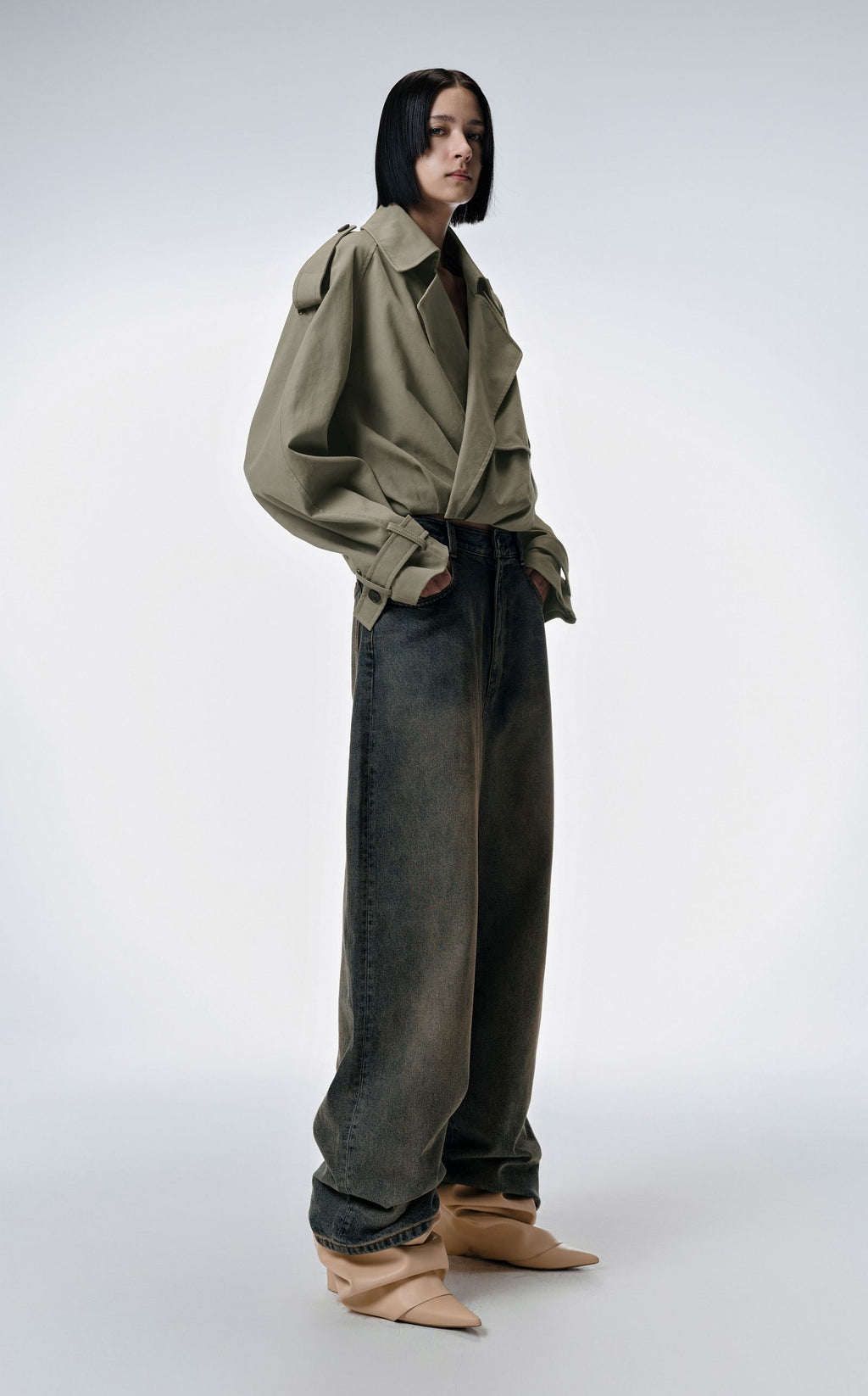 Diese Jacke ist ein unverzichtbares Kleidungsstück mit vielseitigen Möglichkeiten. Der Kragen, die Schulterklappen und der Koller auf der linken Brust lassen die Jacke edel und schick erscheinen. Der cropped Trenchcoat sorgt für einen eleganten Look und der Ballon-Saum verleiht der Jacke eine einzigartige Form. Die Ärmelgürtel mit je 2 Knöpfen bieten zusätzlichen Komfort und machen die Jacke zu einem echten Hingucker. Verschlossen wird die Jacke mit 2 Knöpfen, die für einen perfekten Sitz sorgen.